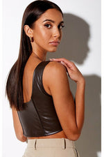 New closet staple? Our brown faux leather bustier top is the closet addition you didn't know you need. Pair with your favorite bottoms or with our Comy, Sexy, Coo dress